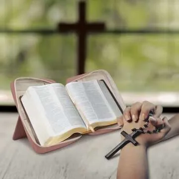 The book stand allows for hands-free reading, reducing neck strain and enhancing comfort while engaging with scriptures.