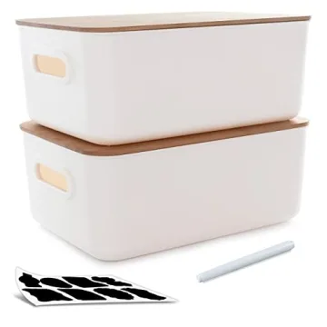 Citylife 2 PCS Storage Bins with Bamboo Lids – Organizing Made Stylish