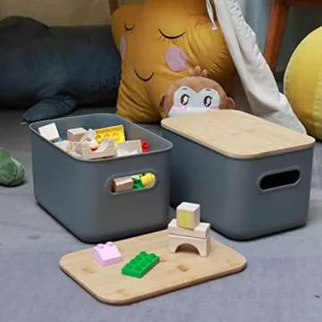 Citylife 4 Packs Plastic Storage Bins with Bamboo lids Stackable Storage Containers for Organizing, Bundled with Labels and Marker 10.24 x 7.01 x 6.1 inch