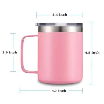 CIVAGO 12 oz Pink Stainless Steel Coffee Mug with Handle and Lid