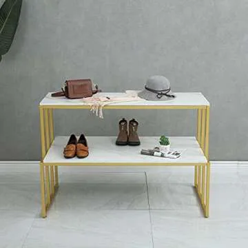 The innovative 2-tier design allows for optimal storage and organization, making it perfect for displaying a wide range of items, including shoes, clothing, handbags, belts, jewelry, and even handicrafts. This storage solution is not just practical but is a perfect example of how functional furniture can help you save precious space.