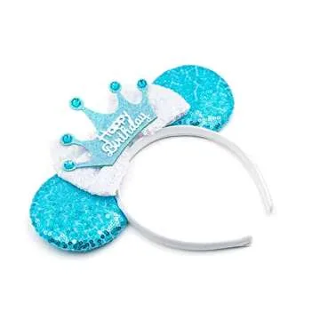 CIVFCRT Blue Birthday Crown Mouse Ears Headband - Shiny Bow for Birthday & Cosplay