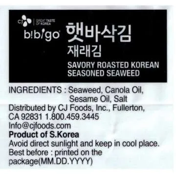 The packaging is not just aesthetically pleasing but also professional and secure, ensuring that every snack retains its crunchiness and flavor. Perfect for snacking at home or on the go, CJ's Dried Seaweed Snacks are an excellent choice for an afternoon pick-me-up or a healthier alternative to traditional chips. With their umami-rich seasoning, these snacks enhance any culinary creation or can be enjoyed solo!