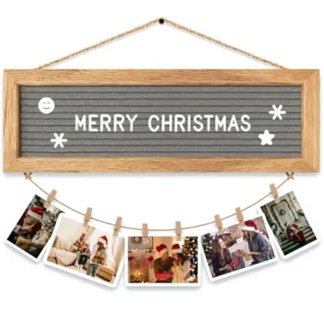 Show more Transform your space into a visual storybook with the CJIAWYS Picture Frames Collage Wall Decor. This innovative DIY creative picture frame set perfectly merges modern aesthetics with personal storytelling. Featuring a rustic felt letter board crafted from high-quality oak wood, this set comes with an impressive 340 pre-cut letters stored in a convenient cloth bag, 15 clips, and a sturdy hemp rope for a unique, customizable photo display experience. Whether you’re showcasing cherished photographs, postcards, or artistic prints, you can easily hang them up and swap them out as often as you like, effortlessly bringing your memories to life.