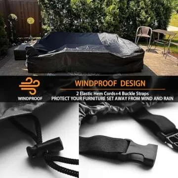 Windy days are no match for this cover, as it comes equipped with strap buckles that secure the cover to your furniture. You can enjoy peace of mind knowing that your furniture is safeguarded against the strong gusts that can send other covers flying. To ensure optimal performance, the cover also features tips on how to position it properly, allowing water and debris to flow down and not accumulate.