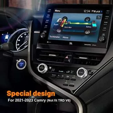 Show moreElevate your driving experience with the CKE Sporty Crystal Bling Accessories designed exclusively for the 8th Generation Toyota Camry, encompassing model years 2018 through 2024. Transform your vehicle with these stunning air conditioning and engine start switch cover rings that flawlessly blend functionality with a dash of style. Crafted from premium aluminum alloy, each ring offers an exquisite, sporty aesthetic without compromising on durability. Enjoy a perfect fit without the worry of damaging your car’s knobs—these covers are easy to install, adhere securely, and leave no residue when removed, ensuring a seamless experience for every Camry owner.