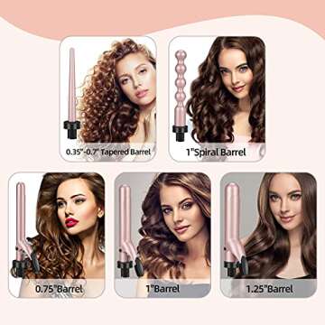 This curler set includes five interchangeable barreling options (09-18mm, 19mm, 25mm, 32mm, and 25mm bead), offering you endless styling possibilities. Transform from beachy waves to tight curls effortlessly while saving time and money on salon visits. Each barrel is user-friendly and easy to switch, making it a perfect choice for both beginners and seasoned hairstylists.