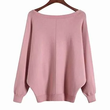 Ckikiou Womens Lightweight Oversized Boat Neck Sweaters Tops Dolman Batwing Sleeve Ribbed Knitted Pullovers Pink