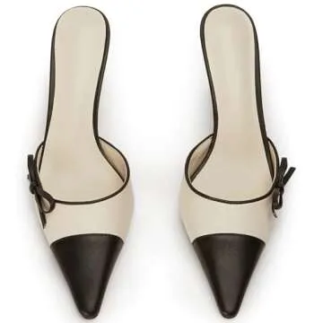 CKSNDLF Bow Tie kitten heel for Women Slip On Mule Backless Stiletto Heel Pointed Toe Ladies Dress Slide Sandals