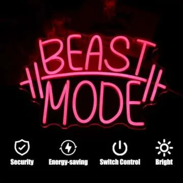 CKTBLEY Beast Mode Neon Signs for Wall Decor Red Letter LED Neon Light Gym Neon Sign Barbell LED Neon Lights Signs Dumbbell Neon Wall Sign for Bedroom Gym Sports Room Fitness Club Decor