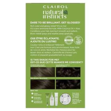 Show moreUnleash your inner beauty with the Clairol Natural Instincts Demi-Permanent Hair Dye in 4 Dark Brown. This exceptional hair coloring solution offers a seamless blend of vibrant shades while nourishing your hair with a unique blend of natural ingredients like Coconut Oil and Aloe. The straightforward zero ammonia formula ensures that your hair remains healthy and shiny, avoiding harsh chemicals that can lead to dryness and damage. Designed for those who crave rich, radiant color with a glossy finish, this hair dye lets you enhance your look without a lengthy commitment. With 37 stunning shades to choose from, you can be creative with your style while staying true to yourself.
