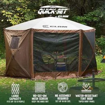 CLAM Pop Up Screen Tent & Shelter, Outdoor Camping Gazebo w/ 6 Wind Panels, 11.5', Brown