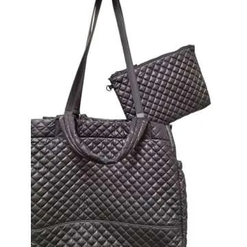 Show moreDiscover the perfect blend of style, functionality, and convenience with the CLARANY Lightweight Gym Travel Commuter Tote. This large shoulder tote is designed for dynamic women on the go, effortlessly combining fashion with practicality. Made by a proud woman-owned brand based in NYC and NJ, this tote features a stylish quilted finish that not only elevates your look but also ensures durability. Its ultra-lightweight construction allows you to carry all your essentials without feeling weighed down, making it an ideal companion for gym sessions, travel, and daily commuting.
