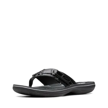 Clarks Women's Breeze Sea Flip-Flop - Stylish Comfort in Black Patent Synthetic