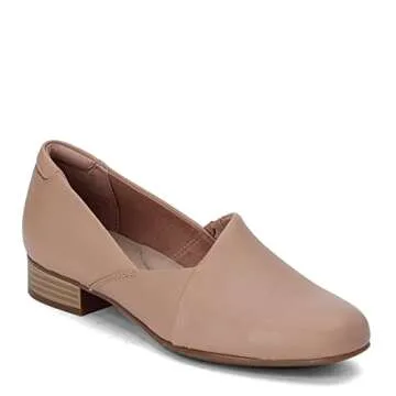 Show moreStep into comfort and style with the Clarks Women's Juliet Palm Loafer, a sophisticated addition to your footwear collection. Crafted from high-quality praline leather, these loafers are designed for both longevity and elegance. With a modest heel height of just 1.02 inches, they're perfect for all-day wear, ensuring that you can transition from day to evening effortlessly. The unique combination of suede and leather offers a visually appealing and modern aesthetic, making them suitable for various occasions.
