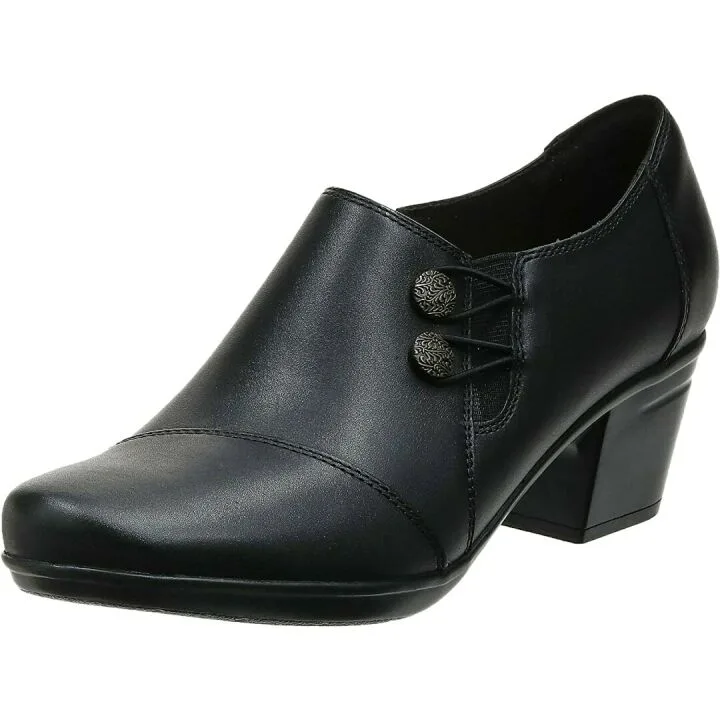 The Emslie Warren shoe by Clarks combines functionality and fashion, ideal for the modern woman. Crafted from 100% leather, these shoes present a top-notch blend of durability and elegance with their decorative metal embellishments and leather upper. The ortholite footbed and cushion soft technology promise all-day comfort, making them perfect for long workdays or casual outings. With a heel approximately 2 inches high, they provide just enough lift to enhance posture yet remain comfortable for extended wear....