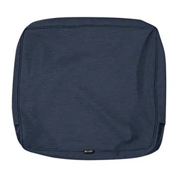 Classic Accessories Montlake Water-Resistant Outdoor Cushion Cover 21 x 20 x 4 Inch in Heather Indigo Blue.