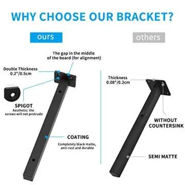 Classic Shelf Bracket 10 inch Floating Bracket for Shelves Anti-Rust Solid Rustic Shelf Brackets Matte Black Well-Made Industrial Iron Style Wall Farmhouse Brace for DIY (6-Pack Hardware Only)