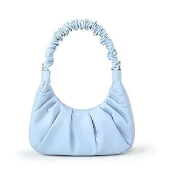 Classic Shoulder Bags for Women Cute Hobo Tote Mini Leather Handbag Clutch Purse Lightweight (Blue)