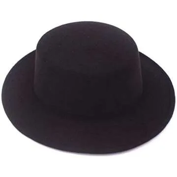 Classic Unisex Wool Blend Fedora Hat Brim Flat Church Cap Wide Brim Classic Pork Pie Hat Perfect for Wedding Party Talent Show Performance Best Xmas Gift for Boys Girls Women Men Black