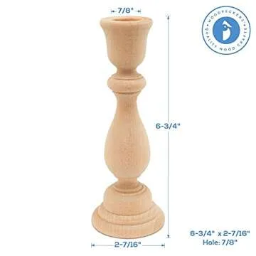 Classic Wooden Candlestick 6-3/4 inches with 7/8 inch Hole, Set of 4 Unfinished Wood Holder for Taper Candle, Ready to Craft, by Woodpeckers