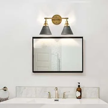Show moreIlluminate your space with the stunning Classy Leaves Bathroom Vanity Light. This exquisite two-light fixture is expertly designed to blend farmhouse charm with a touch of modern sophistication, making it a perfect addition to your home. The Brushed Antique Gold and Black Silver Finishes create a striking contrast that enhances any decor, while the unique conical metal lampshade not only provides a distinctive aesthetic but also optimizes light distribution. With dimensions of 15.5’’ L x 7.5’’ W x 10.5’’ H, this vanity light is an ideal size for various spaces including bathrooms, hallways, and more.