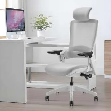 CLATINA Ergonomic High Swivel Executive Chair with Adjustable Height Head 3D Arm Rest Lumbar Support and Upholstered Back for Home Office Gray Mesh 2 Pack