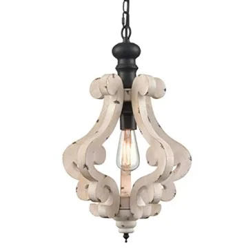 CLAXY Wooden Pendant Light - Distressing Off-White Finish Farmhouse Chandelier