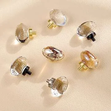 CLCTK 4 Pack Glass Cabinet Knobs and Pulls, Oval Crystal Knobs for Dresser Drawers, Satin Brass/Gold Kitchen Cabinet Knobs Egg Shape