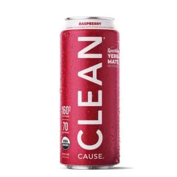 CLEAN Cause Low Calorie Raspberry USDA Organic Sparkling Yerba Mate Tea (16oz cans, 12-Pack Case) Low Sugar, 160mg Caffeine, Healthy Alternative to Soda & Energy Drinks.