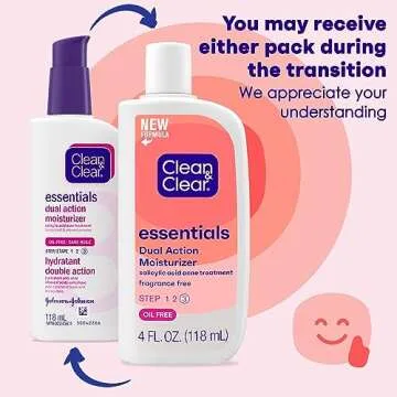 Clean & Clear Essentials Dual Action Oil-Free Facial Moisturizer, Salicylic Acid Acne Treatment with Pro-Vitamin B5 Moisturizes While Treating Acne & Helping to Prevent Pimples, 4 fl. Oz (Pack of 3)