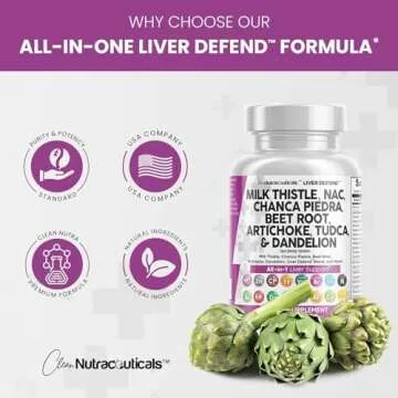 Clean Nutraceuticals Milk Thistle NAC Chanca Piedra Beet Root Artichoke Dandelion Root - Liver Cleanse Detox & Repair Supplement Plus TUDCA Choline & Ginger 60 Count