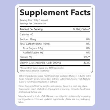 Clean Simple Eats BlackBerry Lemonade Super Collagen, Grass-Fed, Hydrolyzed Types I, II, & III Collagen, 30 Servings
