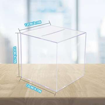 The Clear Acrylic Piggy Bank measures 12cm³, making it a compact and perfect size for any space.