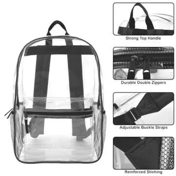 Clear Backpack Heavy Duty Transparent Bookbag for Kids, Boys, Girls, School, Travel, Stadium Approved (Black)