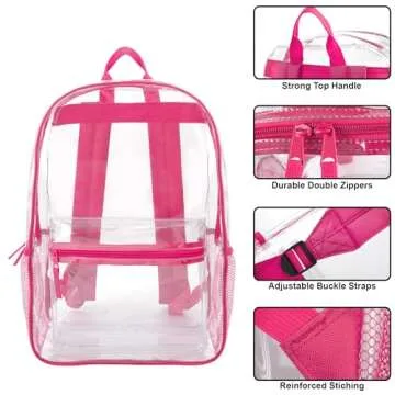 Clear Backpack Heavy Duty Transparent Bookbag for Kids, Boys, Girls, School, Travel, Stadium Approved (Pink)