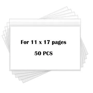 Clear Bags for 11x17 Art Prints, Photos, Acid Free Self Seal 11x17 Print Sleeves, Poster Sleeves 11x17, 50-Pack