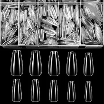 BTArtbox Clear Coffin Nails - 500 Pcs of Short Ballerina Nail Tips with Case, 10 Sizes