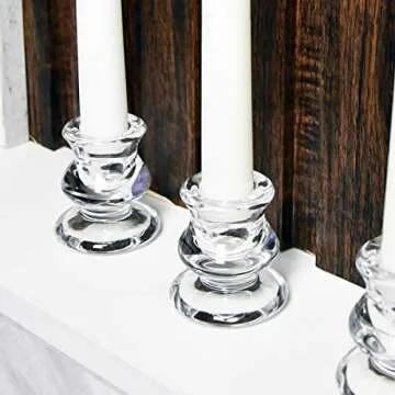 Transform your home into a beacon of warmth and elegance with our stunning Clear Glass Candlestick Holders. Perfectly designed for standard taper candles, these exquisite holders are not only beautiful but also functional. Standing at 2.44 inches (6.2cm) tall with a diameter of 2.03 inches (5.3cm), each holder is crafted from high-quality, durable glass that enhances the clarity and brilliance of your candles. With a snug fit for tapered candles measuring...
