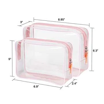 Clear Pouch, Clear Travel Bags for Toiletries, Lightweight Clear Toiletry Bag, 2 Pack Multipurpose Transparent TSA Cosmetic Bag Clear Pouch For Traveling-Pink