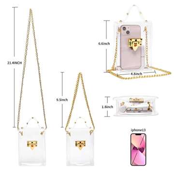Show more Introducing the perfect blend of style and practicality with this stunning clear bag made from high-quality TPU material. Unlike traditional PVC bags, our TPU bags boast superior durability while providing a sleek, modern aesthetic. Measuring 6.6 x 4.8 x 1.8 inches, it is well-sized to hold your essential items—think lipstick, cellphone, notebook, and even a small umbrella. Whether you’re heading to a concert, stadium, or airport, this bag meets all security requirements with its transparent design, allowing you to breeze through checks with ease.