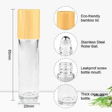 Clear Refillable Glass Empty Roll on Bottles Roller Bottle,10ml Bamboo Roll On Bottle For Essential Oils Perfume Sample Bottles With Stainless Steel Roller Ball &Bamboo Cap,12pcs