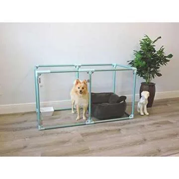 Clearly Loved Pets Lucidium Dog Pen, Small 24 in. x 48 in, Blue, 27 in. Height, Pet Play Pen, X Pen, Dog Crate for The Modern Dog
