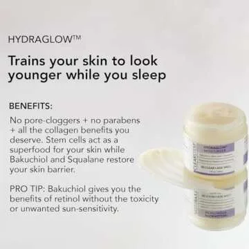 Show more If you are seeking the ultimate skincare savior, look no further than the remarkable HYDRAGLOW Stem Cell Moisturizer. This dazzling product is crafted with a blend of powerful ingredients like bakuchiol and squalane that work harmoniously to rejuvenate your skin overnight, training it to reveal a younger, more radiant look. Imagine waking up to plump, glowing skin that is beautifully hydrated—this is not just a dream, but a reality with HYDRAGLOW. The innovative formula serves as a superfood for your skin, utilizing the strength of stem cells to restore your natural beauty while effectively targeting breakouts and fine lines.
