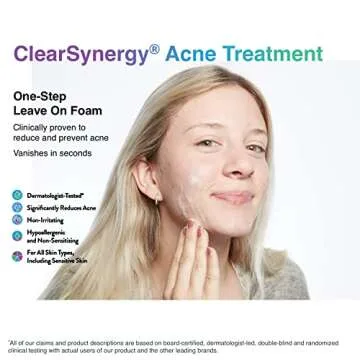 Show moreIntroducing ClearSynergy One-Step Acne Treatment Foam – a transformative solution for acne management that's both effective and gentle! This clinically proven formula is the first of its kind, offering a breakthrough in acne treatment with just one simple step. Designed with a unique blend of ingredients, it includes only 0.5% salicylic acid, working in harmony to provide real relief without irritation or harshness. Whether you're battling stubborn breakouts or looking to prevent future flare-ups, ClearSynergy is your all-in-one ally for clear skin.