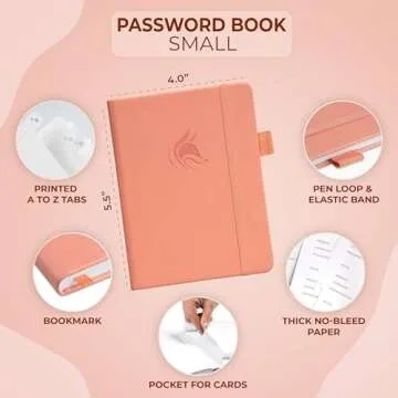 Clever Fox Password Book with Alphabetical tabs. Internet Address Organizer Logbook. Small Pocket Password Keeper for Website Logins (Peach Pink)