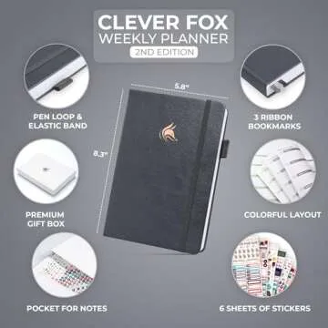 Clever Fox Planner 2nd Edition – Colorful Weekly & Monthly Goal Planner, Time Management & Productivity Organizer, Undated, A5 (Silver Black)