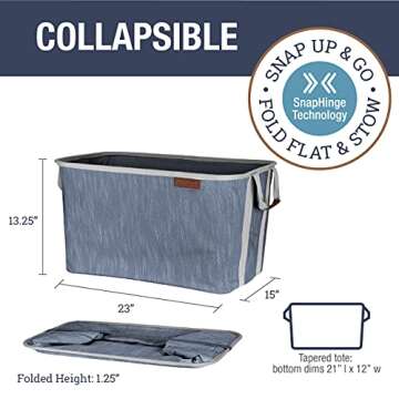 CleverMade Collapsible Fabric Laundry Basket - Durable Pop Up Storage Organizer with Handles - Space-SAVING XL Clothes Hamper with Sturdy Frame, Navy/Grey