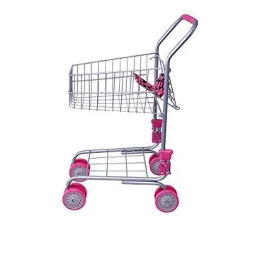 Click N’ Play Kids Shopping Cart with Food, Play Grocery Cart for Kids with 23 Pieces, Toddler Shopping Cart - Fits 18 inch Baby Dolls, Smooth Rolling Wheels, Folds for Easy Storage, Pink & Black