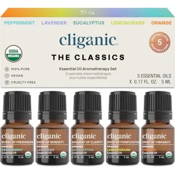 Show moreIntroducing the Cliganic Organic Essential Oils Set, a beautifully curated collection of the top five essential oils that are perfect for anyone eager to explore the rejuvenating benefits of aromatherapy. This stunning gift set includes the uplifting Peppermint, the calming Lavender, the refreshing Eucalyptus, the earthy Lemongrass, and the zesty Orange oils, each housed in charming, eco-friendly packaging. Designed with quality and purity in mind, these essential oils are USDA organic certified, ensuring you're incorporating safe and pure products into your routines. Whether you’re aiming to boost relaxation, refresh your living space, or add a natural fragrance to your candles, this set meets all those needs while maintaining sustainability through its cruelty-free and vegan certificate.